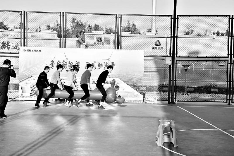 2020年12月29日,三川風(fēng)電公司舉辦“喜迎元旦團(tuán)體大比拼”趣味活動(dòng),圖為職工正在進(jìn)行毛毛蟲(chóng)趣味競(jìng)賽。(吳敏 攝影報(bào)道)