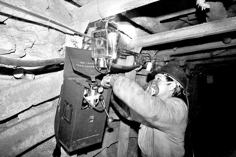 永安煤業公司水井坑煤礦認真執行瓦斯防治“三落實三必查”制度,落實瓦斯日常檢測要求。圖為1月9日,該礦監控維護工正在對瓦斯傳感器進行標校。