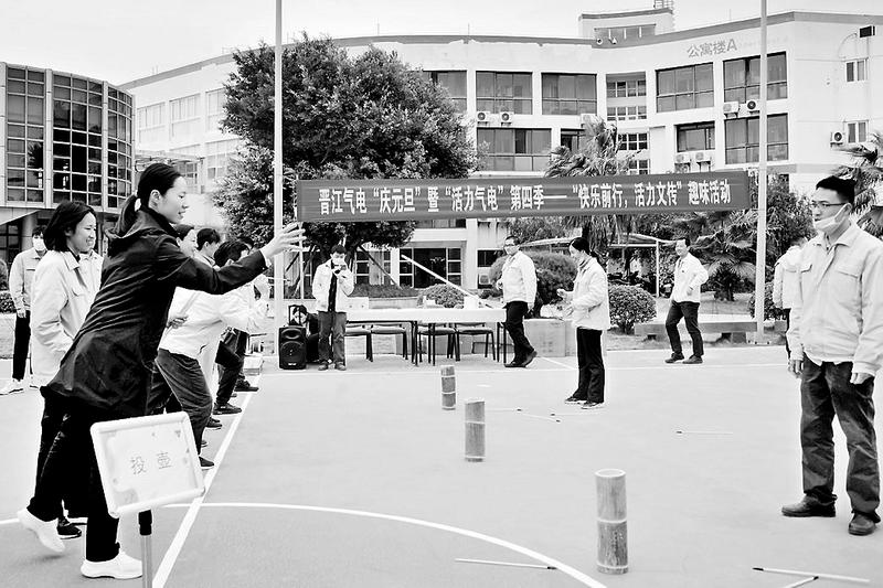 1月6日,晉江氣電公司組織開展“慶元旦”暨“活力氣電”第四季—“快樂前行,活力文傳”趣味活動。圖為該公司員工正在參與“投壺”游戲。