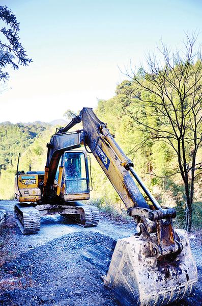 永安煤業公司池坪蘆坑煤礦對+800m公路進行簡易的水泥澆灌,解決材料設備運輸和職工上下班交通不便的問題。圖為1月14日,該礦用挖掘機對公路的基礎進行開挖。
