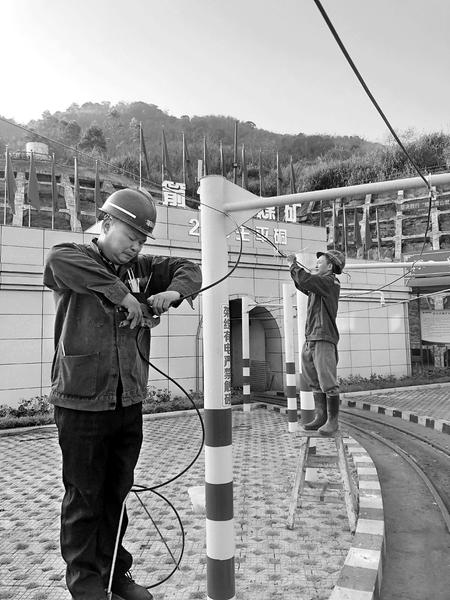 近日,漳平煤業公司箭竹坪煤礦加快推進高壓噴霧系統的安裝,目前已完成+283主平硐至一采區高壓噴霧系統的安裝并已投入使用,下一步開始對地面生產設施及各區段進行安裝施工。圖為2月2日,該礦工作人員在地面運輸主干道安裝高壓噴霧系統。(盧景喆攝影報道)