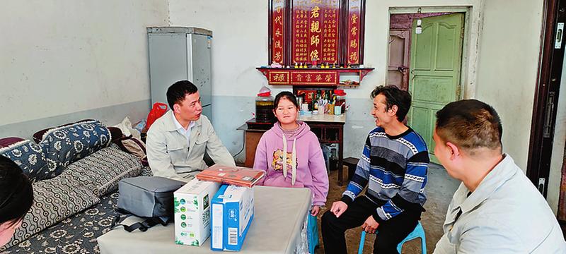 圖為張清明(左)在賀思彤家中走訪。 2月22日,在貴州省六盤水市六枝特區(qū)巖腳鎮(zhèn)老卜底村支部書記李紅的陪同下,福能(貴州)發(fā)電有限公司紀(jì)委書記張清明帶領(lǐng)該公司團(tuán)委同志到老卜底村開展愛心助學(xué)活動(dòng),為老卜底村貧困學(xué)生贈(zèng)送了書包、筆記本等學(xué)習(xí)用具,并為蘇聽聽和賀思彤兩位貧困學(xué)生帶去了助學(xué)金。