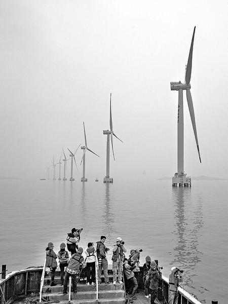 “這個風車高100米,風葉長75米,每轉(zhuǎn)一圈就能發(fā)電11度。”“真沒想到海上能建這么大的風車。”福能集團莆田石城海上風電場的巨型風車給攝影家們帶來強烈的視覺沖擊,很多攝影家以前只在報道上看過風車發(fā)電,第一次零距離拍攝這樣的大國重器,感覺相當震撼。
