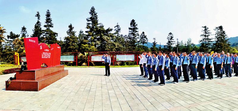 4月2日上午,永安煤業(yè)仙亭煤礦與大田縣市場監(jiān)督管理局在該礦黨建主題公園聯(lián)合開展“學(xué)黨史、再調(diào)研”活動。圖為黨員們重溫入黨誓詞的場景。(薛文勇攝影報道)