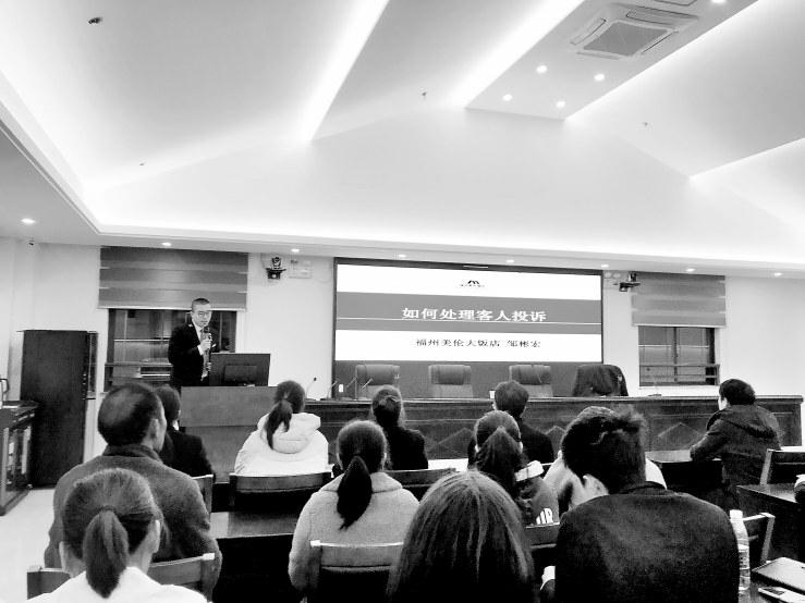 圖為美倫大飯店管理人員為下黨鄉(xiāng)服務(wù)人員上培訓(xùn)課。