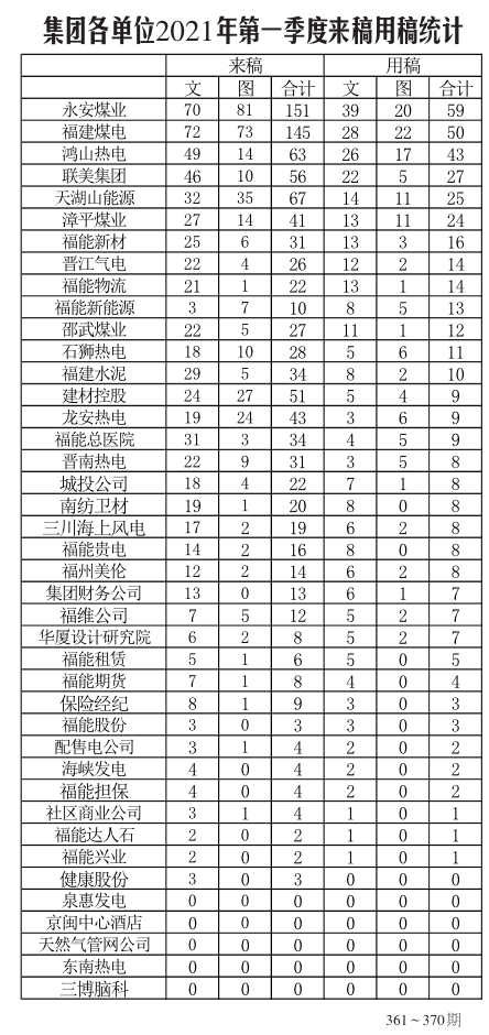 集團(tuán)各單位2021年第一季度來(lái)稿用稿統(tǒng)計(jì)