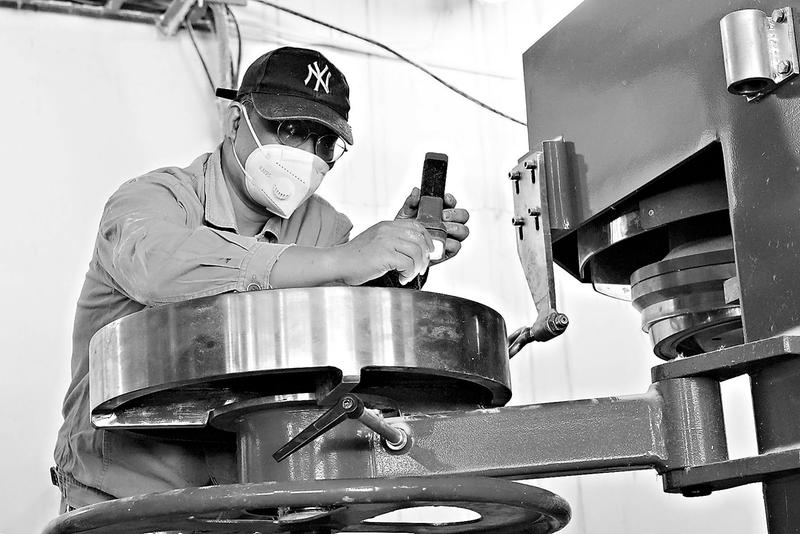 今年以來,福維公司對維綸一廠超短纖3臺切斷機設備進行升級改造,進一步提高設備運行效率。圖為近日,該公司員工正在對切斷機運行設備進行維護調(diào)試。