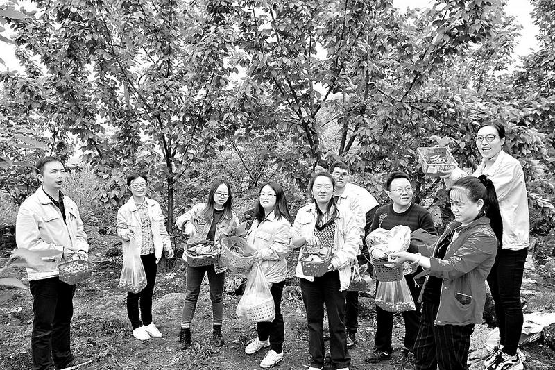 為助力地方脫貧,福能貴電公司開(kāi)展“慶建黨百年·福能貴電扶貧”活動(dòng)。圖為4月13日,該公司職工在六盤(pán)水市老卜底村幫助村民采摘櫻桃。