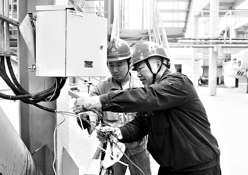 龍安熱電公司狠抓現(xiàn)場安全管理維護(hù),確保生產(chǎn)正常安全運(yùn)行。圖為4月13日,該公司工人正在對3號電除塵照明進(jìn)行跳閘故障排查。