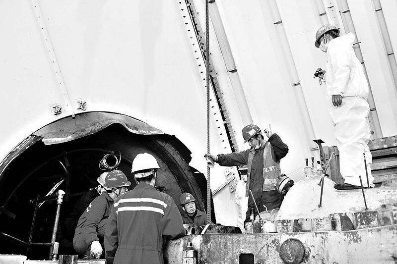近日,晉江氣電公司3號機組C級檢修工作全面展開。本次檢修主要工作為汽輪機高中壓缸解體檢修、中分面修復,220kV主變及架空線路預防性檢修及試驗,余熱鍋爐受熱檢查等。圖為檢修人員正在對燃機A靠背輪中心進行調整。(王素環(huán) 攝影報道)