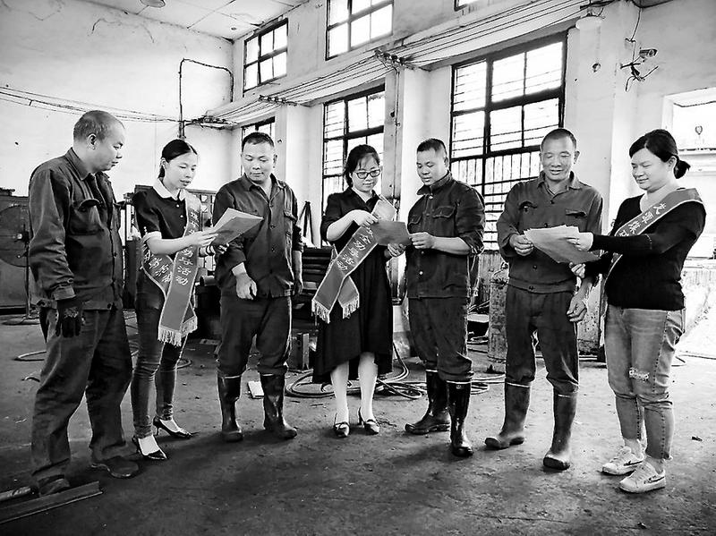 福建煤電公司龍?zhí)睹旱V女工委組織協(xié)管員通過安全勸導(dǎo)和發(fā)放宣傳資料的方式向職工宣傳相關(guān)防災(zāi)減災(zāi)知識(shí),增強(qiáng)職工的危機(jī)防范意識(shí)。圖為5月10日,女工協(xié)管員在機(jī)電修車間開展系列宣傳活動(dòng)。(林莉思忠攝影報(bào)道)