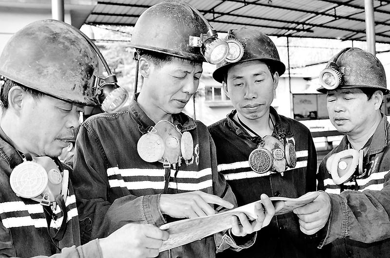 圖為羅欽裕(左二)下井前與班員查看交接班記錄。 有這么一群人,像一顆顆螺絲釘,默默堅守煤礦井下一線,埋頭苦干,刻苦鉆研,用勤勞的雙手奮戰在自己的工作崗位上,永安煤業公司仙亭煤礦掘進二隊管理員羅欽裕就是其中的典型代表。