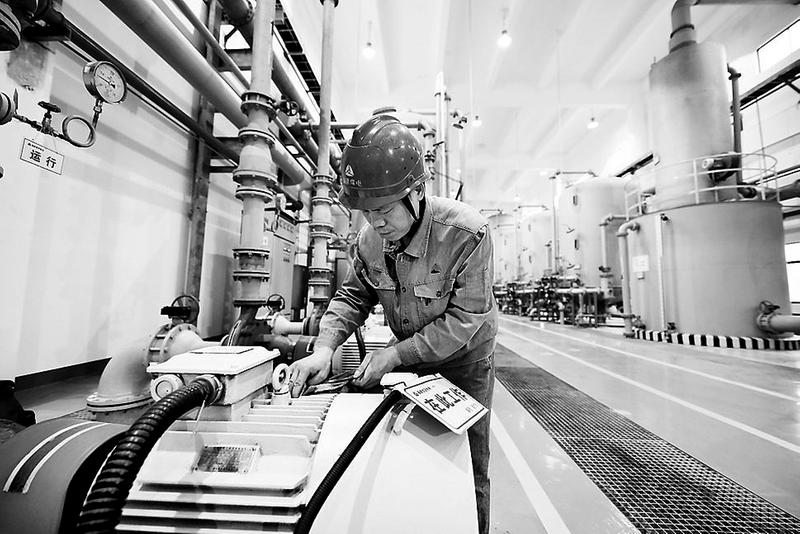 龍安熱電公司扎實加強生產(chǎn)環(huán)節(jié)管理,為完成紅五月生產(chǎn)經(jīng)營工作目標、實現(xiàn)“雙過半”而努力。圖為5月24日,工人在廠內除鹽水車間對低壓電機進行日常維護。