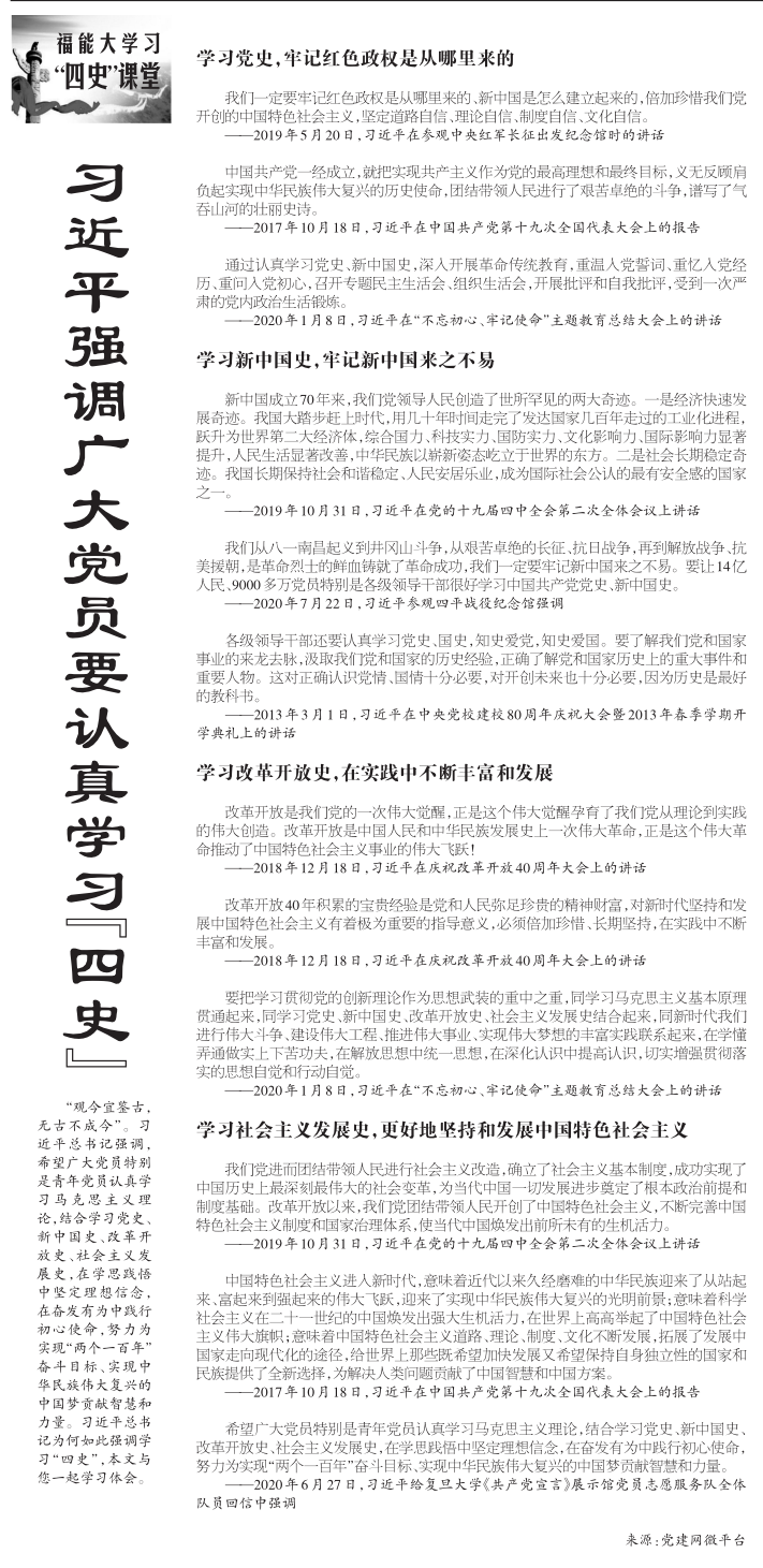 習(xí)近平強(qiáng)調(diào)廣大黨員要認(rèn)真學(xué)習(xí)“四史”