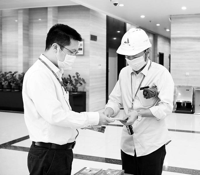 6月1日,鴻山熱電公司舉行“安全生產(chǎn)月”主題簽名活動(dòng)。圖為安監(jiān)人員在現(xiàn)場(chǎng)發(fā)放安全知識(shí)口袋手冊(cè)。(傅松華 劉寒婷 攝影報(bào)道)
