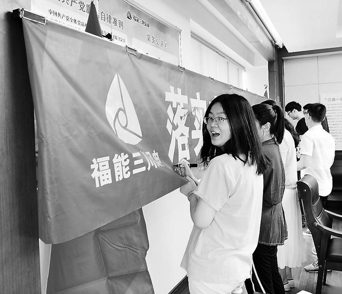 6月1日上午,三川海上風電公司召開“落實安全責任,推動安全發(fā)展”為主題的啟動會暨安全承諾簽名活動,組織員工在“落實安全責任,推動安全發(fā)展”橫幅上進行承諾簽名。(吳敏許建雄攝影報道)