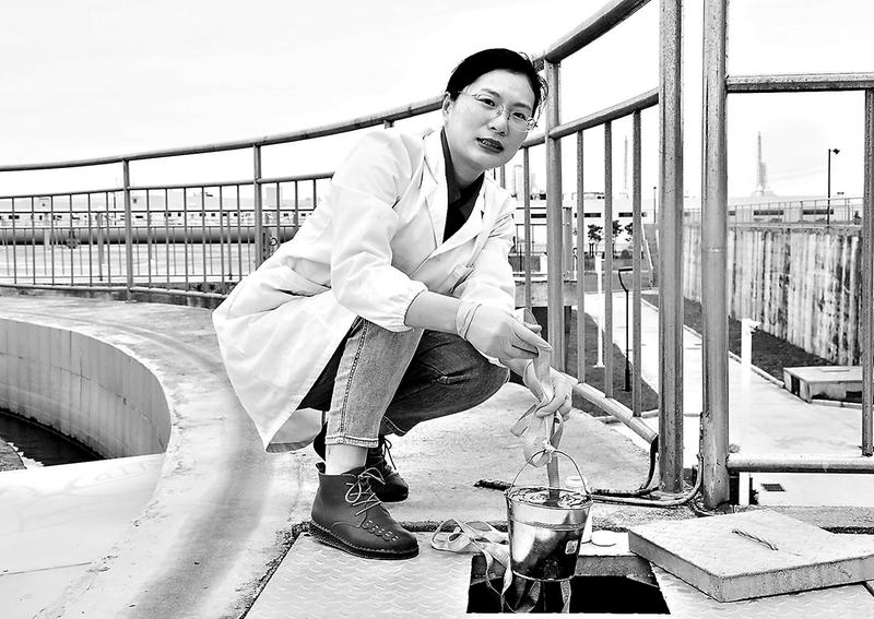 (鄭靜 攝影報道)圖為楊素欽在提取水樣。