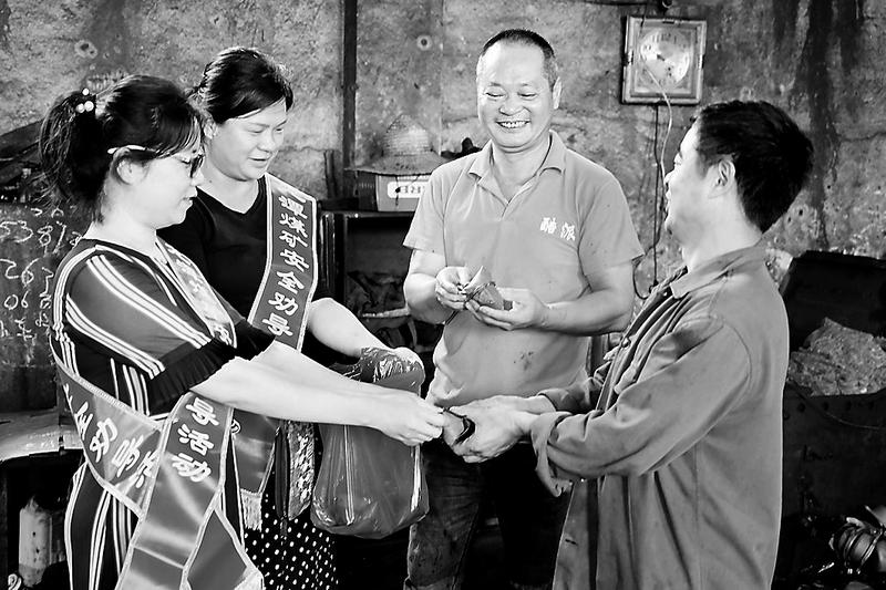 6月7日,福建煤電公司龍潭煤礦共青團、女工委聯合開展了“粽情端午·情系安全”主題活動。圖為協管女工到機修車間送粽子。