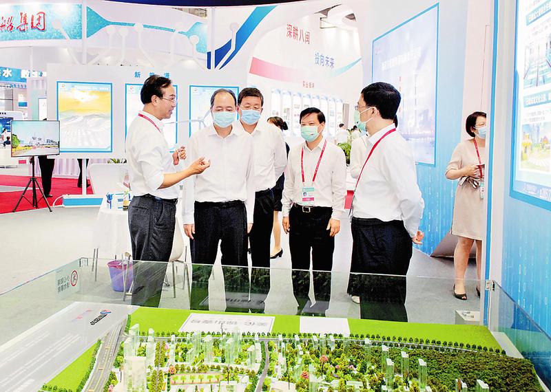 6月18日,第十九屆中國(guó)·海峽創(chuàng)新項(xiàng)目成果交易會(huì)拉開帷幕。據(jù)悉,福能集團(tuán)“6·18”展館分六個(gè)展區(qū),重點(diǎn)展現(xiàn)福能集團(tuán)發(fā)展熱電聯(lián)產(chǎn)、開發(fā)陸上和海上風(fēng)電,大力發(fā)展節(jié)能減排和清潔可再生能源產(chǎn)業(yè);關(guān)閉礦井、開展土地復(fù)墾以實(shí)施生態(tài)恢復(fù)治理、積極推進(jìn)綠色礦山建設(shè);打造健康養(yǎng)老產(chǎn)業(yè),建設(shè)特色專科醫(yī)院,實(shí)現(xiàn)產(chǎn)業(yè)轉(zhuǎn)型升級(jí)和綠色、健康、可持續(xù)發(fā)展等方面的成就。圖為集團(tuán)黨委副書記、總經(jīng)理謝榮興(左一)向省委常委、秘書長(zhǎng)、常務(wù)副省長(zhǎng)鄭新聰(左二)介紹集團(tuán)科技創(chuàng)新情況。(康維方攝)