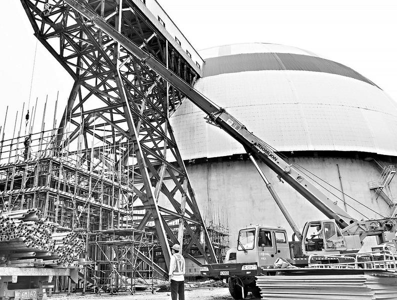 6月7日,鴻山熱電公司工作人員頂著烈日,在C4A/B燈籠架改造現場搭設1號第二層支架腳手架、安裝3號支架第一層梁鋼筋、封板4號支架第一層梁模板等工作,吊車操作手正在起吊施工所需的各類物資,改造工作正有條不紊推進中。(劉寒婷攝影報道)