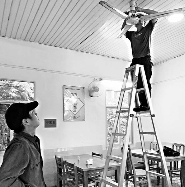 圖為該站工作人員正在安裝吊扇。 今年以來(lái),