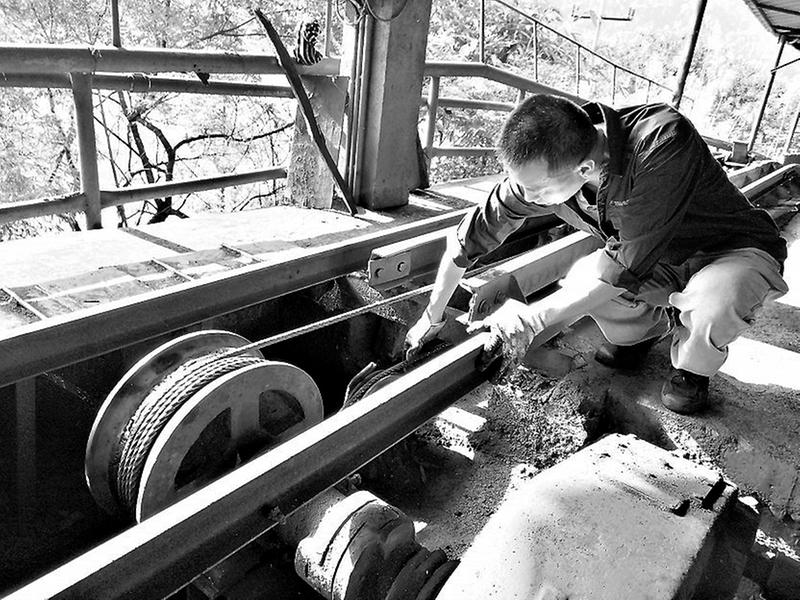為防范生產(chǎn)事故的發(fā)生,確保機(jī)電設(shè)備的正常運(yùn)轉(zhuǎn),天湖山能源公司運(yùn)銷部堅(jiān)持每天對機(jī)電設(shè)備進(jìn)行巡檢工作。圖為6月11日,機(jī)電人員正在對爬車機(jī)進(jìn)行安全檢查。(李強(qiáng)攝影報道)
