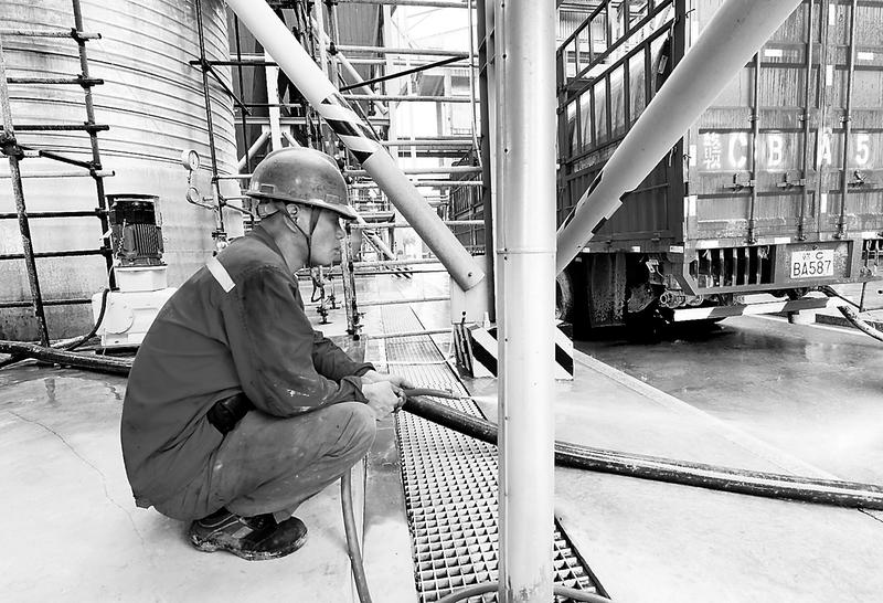 龍安熱電公司職工在“安全生產月”中發揚不怕苦不怕累精神,扎實工作。圖為近日,工人冒雨在生產現場進行清洗作業。(吳仙和攝影報道)