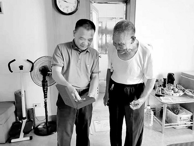6月17日,漳平煤業(yè)公司黨委副書記、紀(jì)委書記郭淵源(左)帶領(lǐng)相關(guān)人員慰問66年黨齡的老黨員于勇洋,并送去“光榮在黨50年”紀(jì)念章以及節(jié)日慰問金。