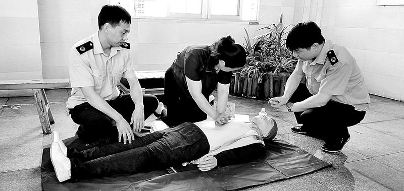 6月18日,天湖山能源公司含春煤礦組織環(huán)衛(wèi)、后勤家屬工進行心肺復蘇急救搶救培訓,提升家屬工安全意識和急救技能水平。(姚文華攝影報道)