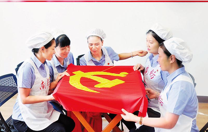 在中國(guó)共產(chǎn)黨成立100周年之際,南紡衛(wèi)材公司女工們歷時(shí)5天,一針一線繡制出一面長(zhǎng)2.4米、寬1.6米的黨旗,用別樣情懷向中國(guó)共產(chǎn)黨建黨百年獻(xiàn)禮。