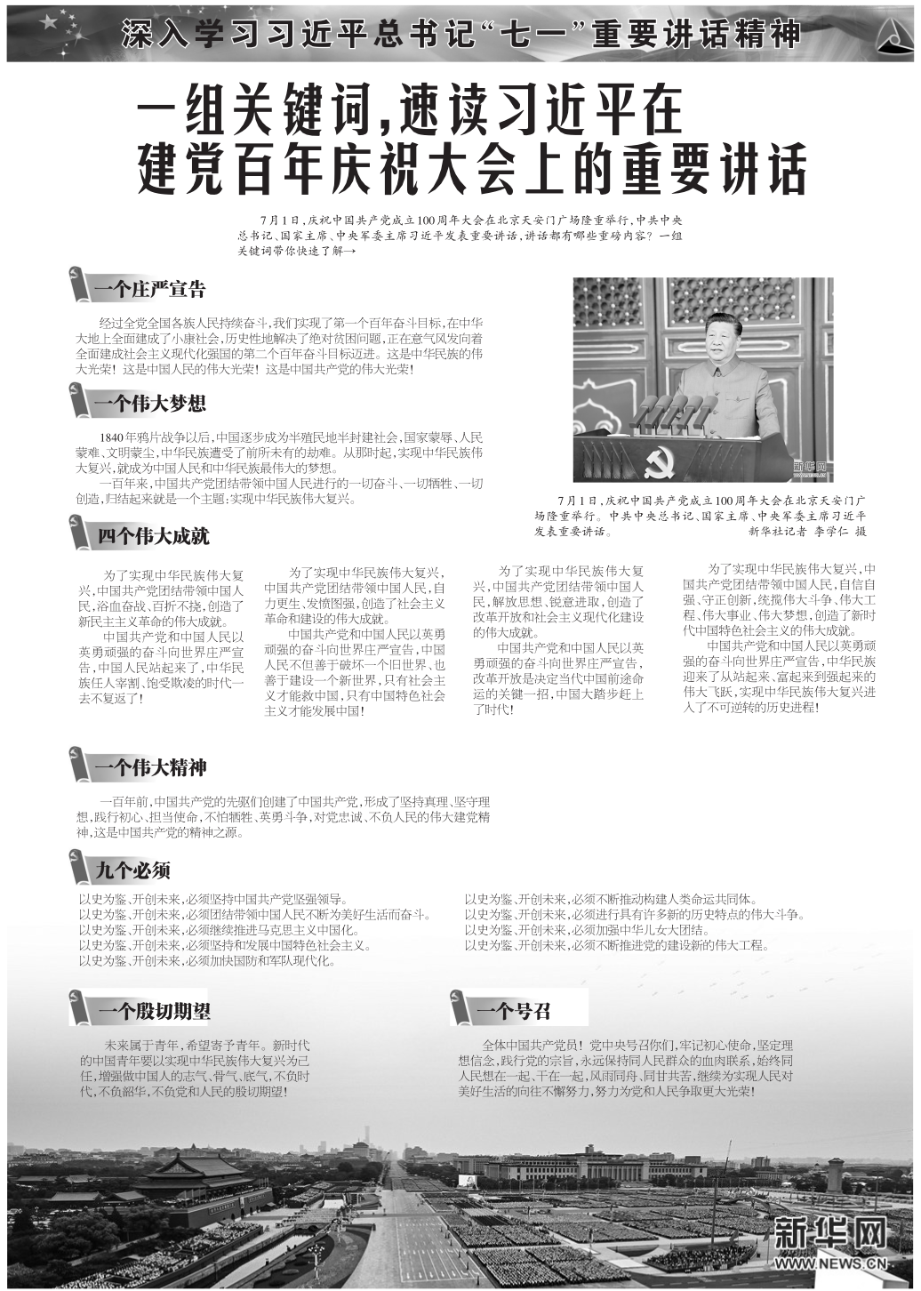 一組關(guān)鍵詞,速讀習(xí)近平在建黨百年慶祝大會(huì)上的重要講話