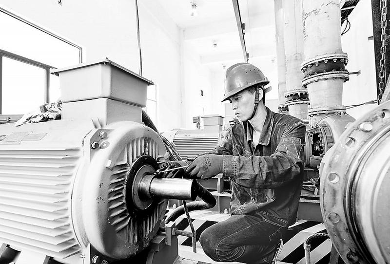 下半年來,龍安熱電公司緊鑼密鼓做好廠內(nèi)生產(chǎn)設備檢修維護,努力確保安全生產(chǎn),為下半年公司供熱、發(fā)電等各項指標的完成打好基礎。圖為7月5日,工人在對三號塔漿液循環(huán)泵電機進行檢修。(吳仙和攝影報道)