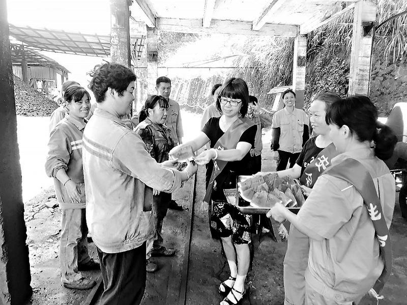 近日,永安煤業(yè)公司加福篩選廠女工安全協(xié)管員開展“送清涼,囑安全”活動,將西瓜送到生產(chǎn)一線崗位員工手上,并叮囑崗位工人注意防暑,遵守安全操作規(guī)程。