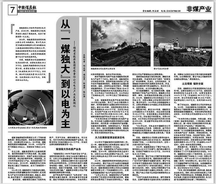 2014年之后,福能集團(tuán)大力推進(jìn)結(jié)構(gòu)調(diào)整,在加速關(guān)閉資源稟賦差的礦井的同時,把發(fā)展電力產(chǎn)業(yè)作為轉(zhuǎn)型發(fā)展的重點,高起點、高標(biāo)準(zhǔn)、高水平建設(shè)了一批清潔能源發(fā)電項目。截至目前,福能集團(tuán)已建成了包括熱電聯(lián)產(chǎn)、天然氣發(fā)電、燃煤純凝發(fā)電、風(fēng)力發(fā)電、光伏發(fā)電等在內(nèi)的清潔能源產(chǎn)業(yè)體系,控股在役電力機(jī)組容量達(dá)519.3萬千瓦,風(fēng)電投運(yùn)裝機(jī)規(guī)模居福建省第一位。做強(qiáng)做大熱電聯(lián)產(chǎn)業(yè)務(wù)
