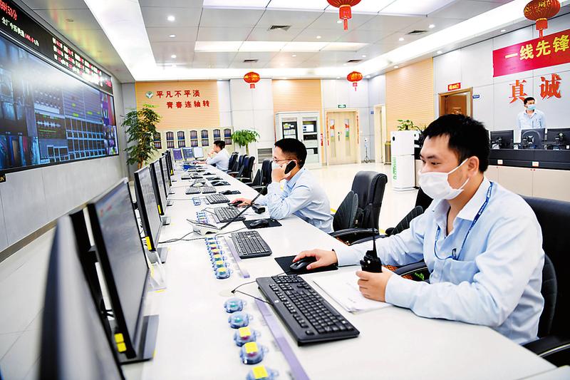 7月22日至27日期間,因石圳電廠全廠停機消缺,鴻山熱電公司成為晉江地區(qū)220kV系統(tǒng)唯一電源點。為確保機組安全穩(wěn)定運行,該公司迅速進入應(yīng)戰(zhàn)狀態(tài),第一時間成立保電供熱領(lǐng)導(dǎo)小組,各部門將機組特巡特護工作方案逐級分解,落實責(zé)任,重點從生產(chǎn)保障及隱患排查、電煤保障、安全保衛(wèi)和反恐怖防范保障等方面著手,全方位做好保電工作,圓滿完成了本次機組特巡特護工作。圖為運行值班員在專注監(jiān)盤。
