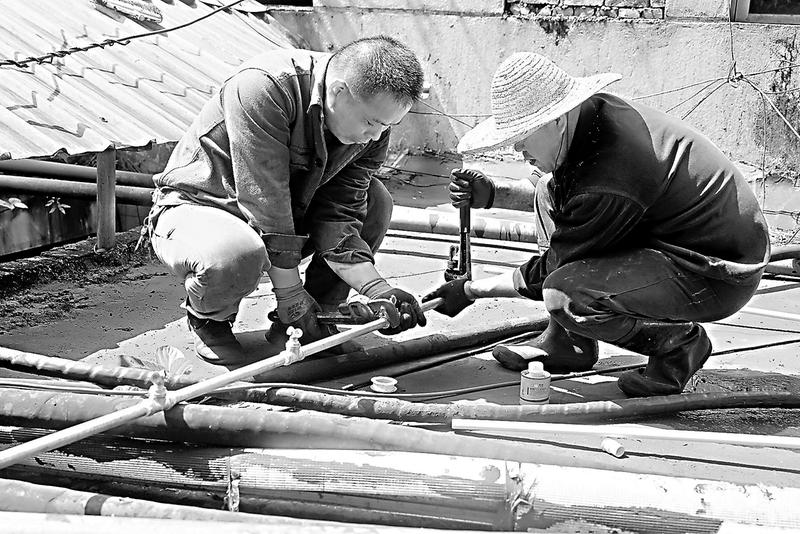 近日,福建煤電公司龍?zhí)睹旱V機(jī)電隊(duì)工作人員引用礦井井下水在該礦井口安全信息中心值班室屋頂安裝噴霧裝置,有效降低了該值班室的室內(nèi)溫度,解決了信息中心值班室悶熱的問(wèn)題。(陳思忠 攝影報(bào)道)