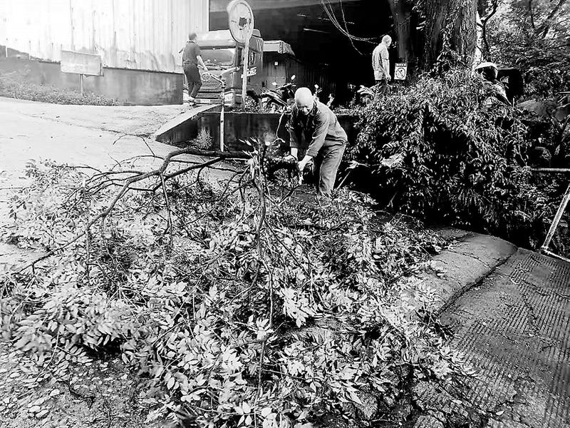 近日,受臺(tái)風(fēng)天氣影響,福建煤電公司雁石發(fā)運(yùn)站路面多處發(fā)生堵塞。該站成立臺(tái)風(fēng)過后整治臨時(shí)小組,做好臺(tái)風(fēng)后的整治工作。圖為整治小組人員正在清理掉落的樹枝。