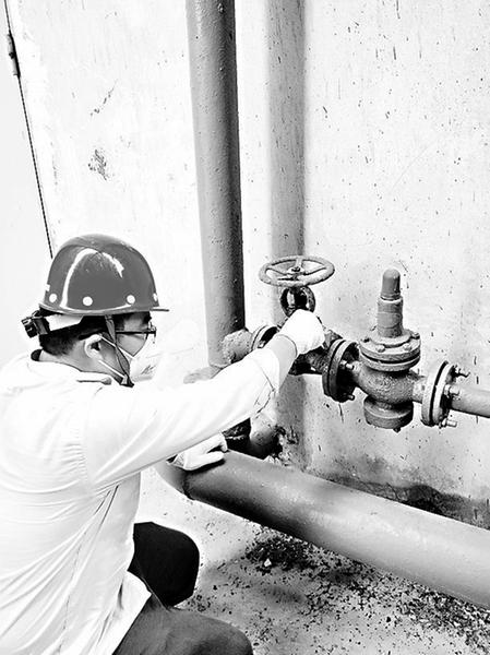 近日,新材公司權(quán)屬泉州公司把設(shè)備防腐作為工作重點(diǎn),管理人員克服酷暑、扎根現(xiàn)場,對腐蝕嚴(yán)重的壓力表進(jìn)行更換,對生銹的調(diào)節(jié)閥、管路法蘭等進(jìn)行除銹、刷漆。圖為設(shè)備防腐現(xiàn)場。(王哲 鄧威威 攝影報(bào)道)