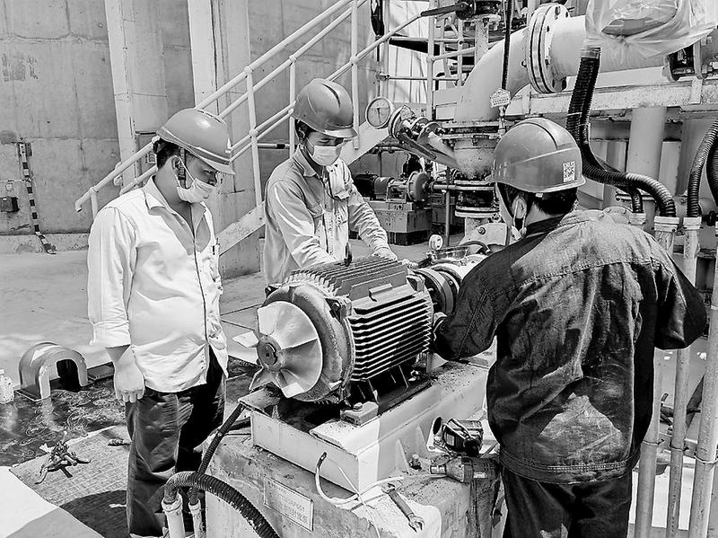 近日,晉南熱電公司開展#2鍋爐及附屬系統(tǒng)C級(jí)檢修工作。圖為8月3日,檢修人員正在維護(hù)設(shè)備。