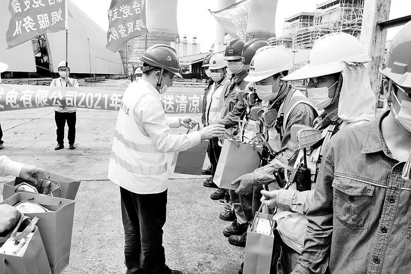 8月10日,福能貴電公司工會(huì)和綜合黨支部聯(lián)合開(kāi)展了2021年夏季“送清涼”暨一線職工慰問(wèn)活動(dòng),為酷暑中奮斗在一線的職工們送去清涼油、風(fēng)油精、藿香正氣水、酸梅湯和西瓜等防暑物品,并囑咐他們注意安全生產(chǎn)。(張朝貴李顏廷攝影報(bào)道)