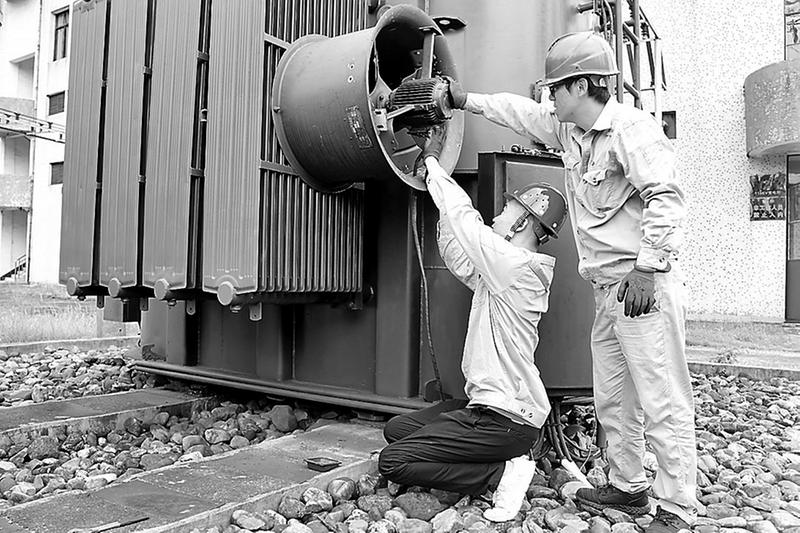 三季度以來,永安煤業(yè)公司上京供電所加強(qiáng)設(shè)備維護(hù)保養(yǎng),確保夏季設(shè)備安全穩(wěn)定運(yùn)行。圖為8月12日,在上京礦區(qū)110千伏變電站,該所運(yùn)維班組職工正在處理1#主變風(fēng)扇電機(jī)故障。(鄭春生攝影報(bào)道)