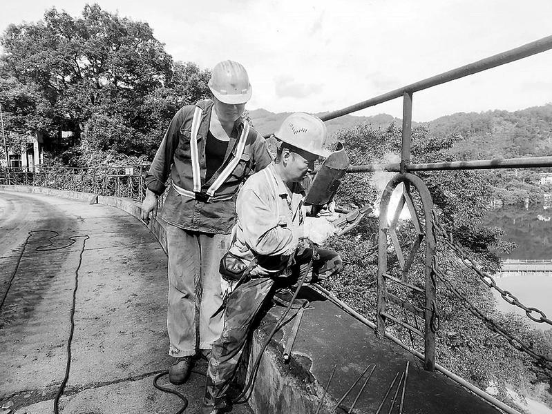 永安煤業(yè)公司加福篩選廠開展安全隱患整治,強化地面安全管理,保障安全生產(chǎn)。圖為8月24日,該廠機電技術工人正對廠區(qū)道路護欄進行補焊加固。(黃發(fā)灼攝影報道)