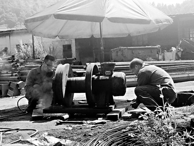 今年以來(lái),福建煤電公司龍?zhí)睹旱V在機(jī)電隊(duì)中開展“機(jī)電設(shè)備限時(shí)搶修不過(guò)班”活動(dòng),有效確保了設(shè)備能夠及時(shí)搶修。圖為8月27日,該礦機(jī)電修人員正在為井下提升設(shè)備加工焊制底座。(陳思忠攝影報(bào)道)