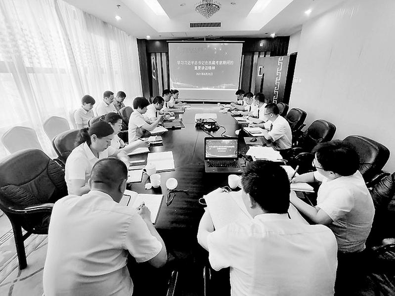 8月25日,寧德美倫大飯店組織飯店全體黨員和管理人員深入學(xué)習(xí)貫徹習(xí)近平總書記在西藏考察期間的重要講話精神。(吳雅鳳攝影報(bào)道)