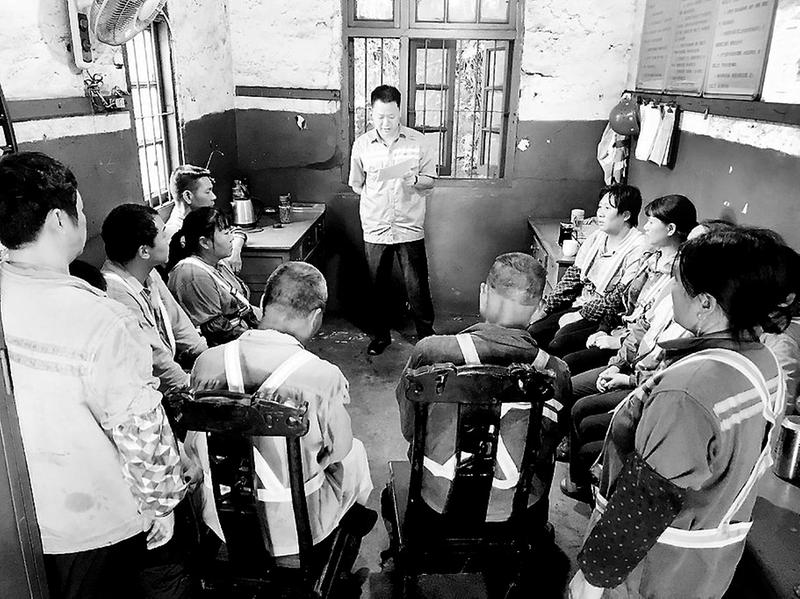 8月30日,永安煤業(yè)公司加福篩選廠支部黨員在車間工休室,向職工宣講習近平總書記“七一”重要講話精神。(黃發(fā)灼攝影報道)