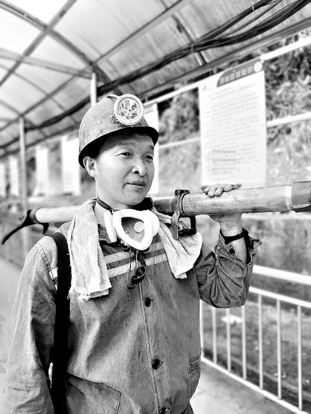 圖為楊英彬扛著工具正準(zhǔn)備下井。 ——記福能集團(tuán)優(yōu)秀共產(chǎn)黨員、永安煤業(yè)水井坑煤礦掘進(jìn)班長(zhǎng)楊英彬