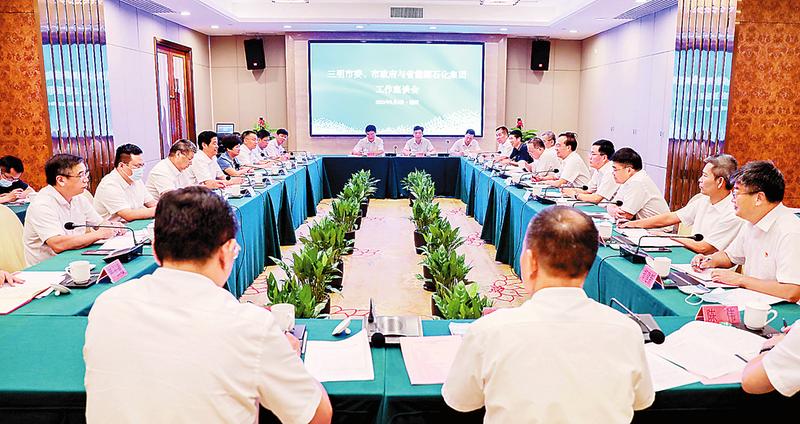 三明市政府副市長程鵬鷹,省國資委副主任張金霖,省能源石化集團(tuán)副總經(jīng)理劉強(qiáng)、黃友星、周朝寶,三明市政府辦公室、工信局、國資委,省國資委規(guī)劃發(fā)展處,以及省能源石化集團(tuán)等有關(guān)企業(yè)、部室負(fù)責(zé)人參加了座談會。(潘駿攝)