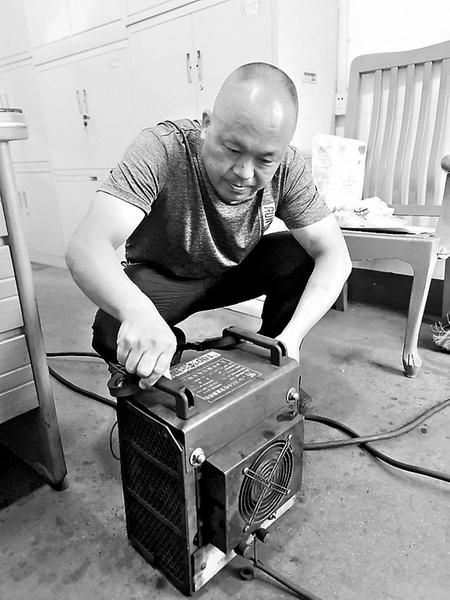 圖為鐘建興在搶修設(shè)備。 “我沒什么大才,‘跑跑腿’的活盡管叫我干。這是福建煤電雁石發(fā)運(yùn)站黨員鐘建興經(jīng)常說的一句話。