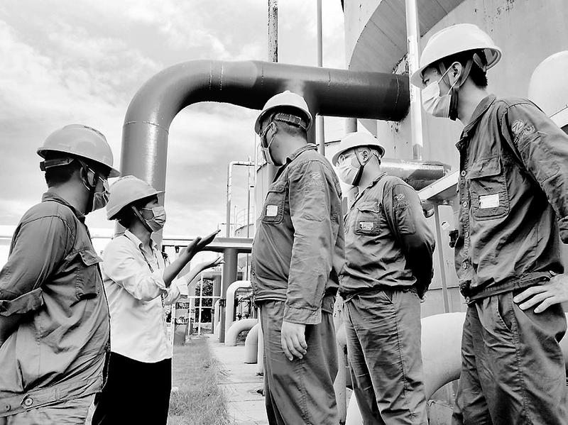 鴻山熱電公司針對下半年部分外委維護單位更替,對生產(chǎn)各個環(huán)節(jié)展開培訓工作。圖為近日發(fā)電部化學主管黃麗金(左二)在化學設備區(qū)域給外委新進場人員進行制水系統(tǒng)講解。(張維明 攝影報道)
