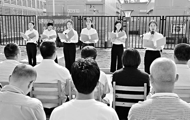 圖為女工宣講小分隊(duì)到升壓站開(kāi)展朗誦快閃活動(dòng)。